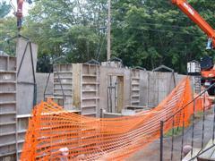 The forms were spaced apart by steel tabs, when the forms were removed, I was