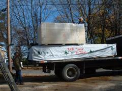 We unloaded the trucks, and sorted all the lumber by size, then coved it over
